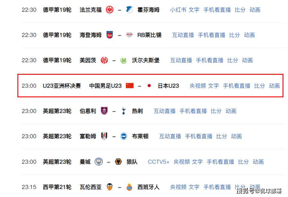 在此之前的U23亚洲杯决赛,央视从未安排转播,随着中国队一路爆冷晋级决赛,也是安排CCTV5频道直播,只是时间变来变去,最开始晚上22点00分,随后晚上19点30分,再是晚上23点30分,决赛变为23点00分,球迷需要注意,依然需要熬夜观赛。